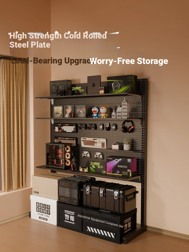 Black Wall-Mounted Storage Rack for Gaming Room - Stylish Iron Display Shelf for Above Computer Desk, Perfect for Organizing and Decorating Your Home Office!