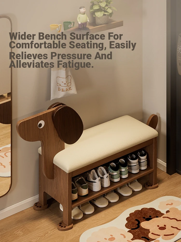 Solid Wood Shoe Bench - Versatile Entryway Storage Seat with Creative Animal Design for Kids - Perfect for Home Use, Stylish & Functional Shoe Cabinet for Entryway