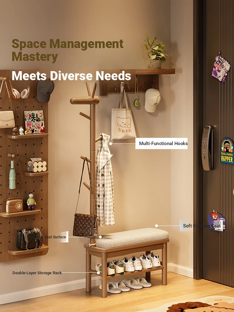 Multipurpose Wooden Shoe Bench and Coat Rack – Stylish Entryway Seating and Storage Solution for Your Home – Ideal for Shoe Changing and Organizing, Perfect for Entry Doors and Hallways