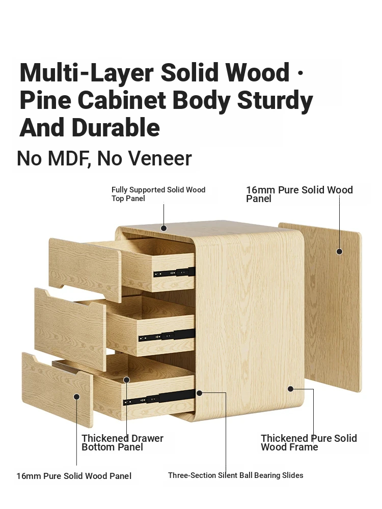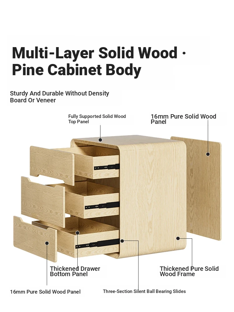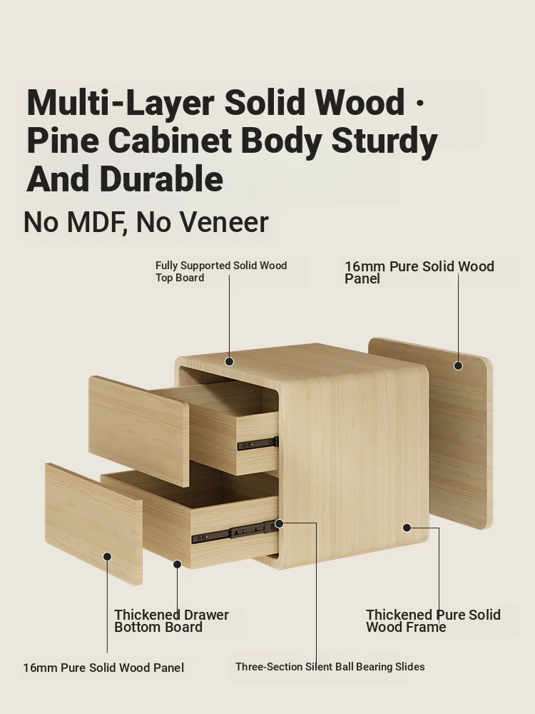 Stylish Solid Wood Nightstand - 2025 New Minimalist Modern Bedside Storage Cabinet for Bedroom, Elegant & Compact Design for Home Use
