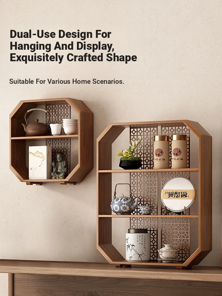 Elegant Desktop Wooden Chinese Antique Display Shelf - Stylish Tea Set Rack, Wall-Mounted & Tabletop Multipurpose Storage Cabinet for Home Décor