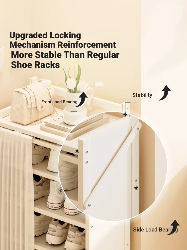 Ultra-Slim Flip-Top Shoe Cabinet - Space-Saving Entryway Storage for Small Homes, 17cm Narrow Cream-Style Organizer for Elegant Hallways