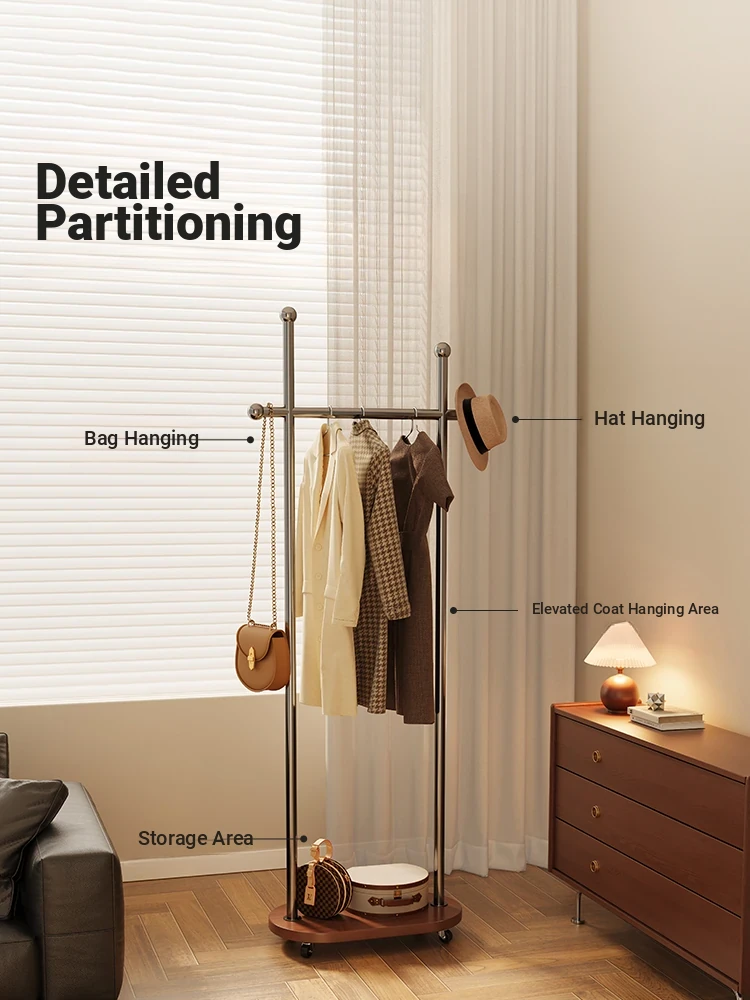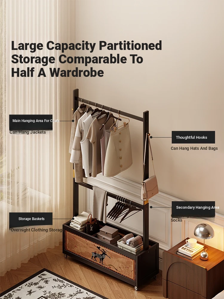 2025 New Compact Floor Clothes Rack for Bedroom - Space-Saving Vintage Style Garment Stand and Storage Solution