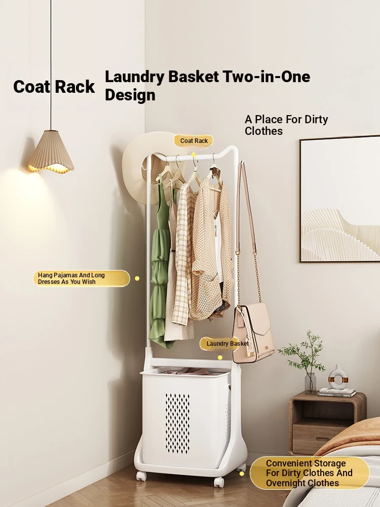 Stylish Freestanding Clothes Rack for Bedroom - Perfect for Bedside Clothing Storage, Open Design with Dust-Proof Features, Ideal Laundry Basket Organizer and Coat Hanger!