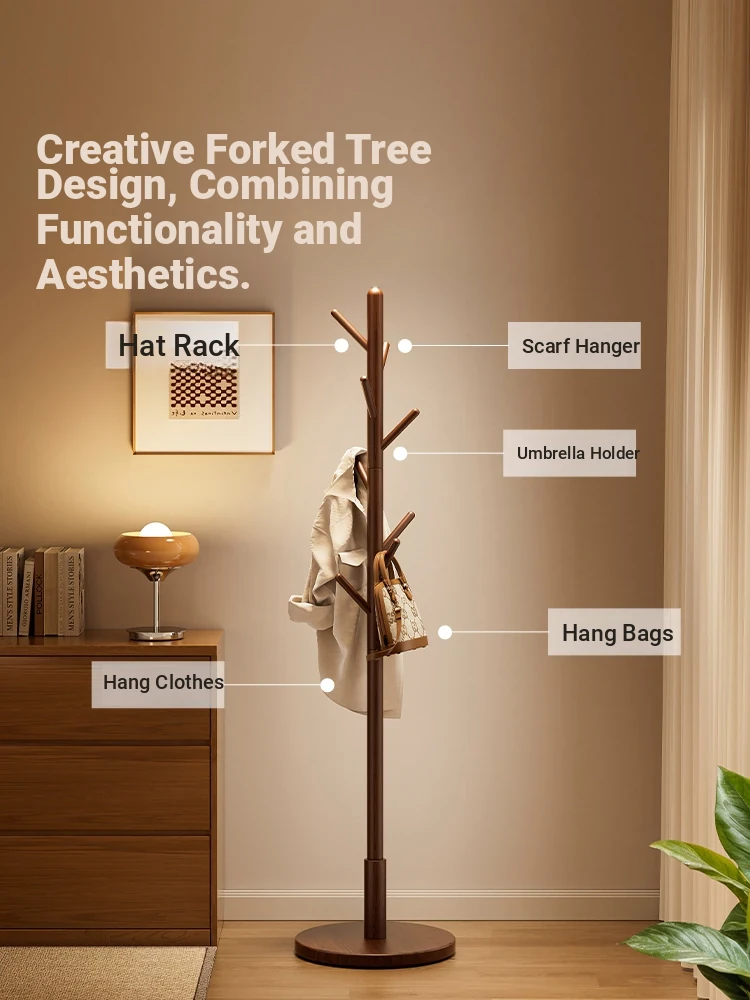 Sturdy Solid Wood Freestanding Coat Rack - Durable and Simple Indoor Clothes Hanger for Bedroom and Home Use, Perfect for Hanging Coats and Bags