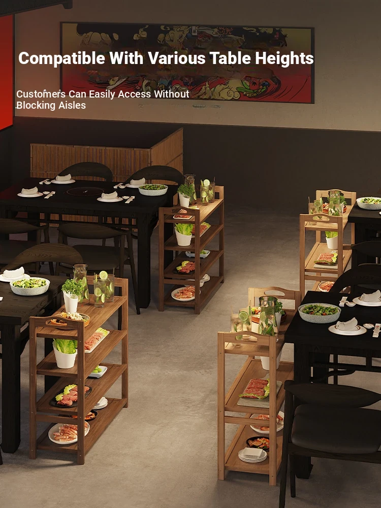 Multi-Layer Solid Wood Vegetable Rack for Hotpot Restaurants - Commercial Kitchen Display Stand for Organizing Ingredients and Dishes Efficiently