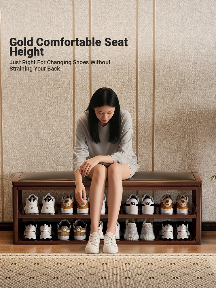 Solid Wood Shoe Bench for Entryway - Multi-functional Seating and Storage Solution for Home, Ideal for Organizing Shoes at the Doorstep, Stylish and Practical Design for Hallway Use.