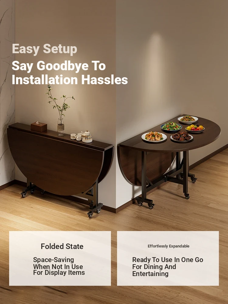 Foldable Round Dining Table for Home - Space-Saving, Portable Design for 12 People - Stylish New Model Ideal for Family Meals and Gatherings
