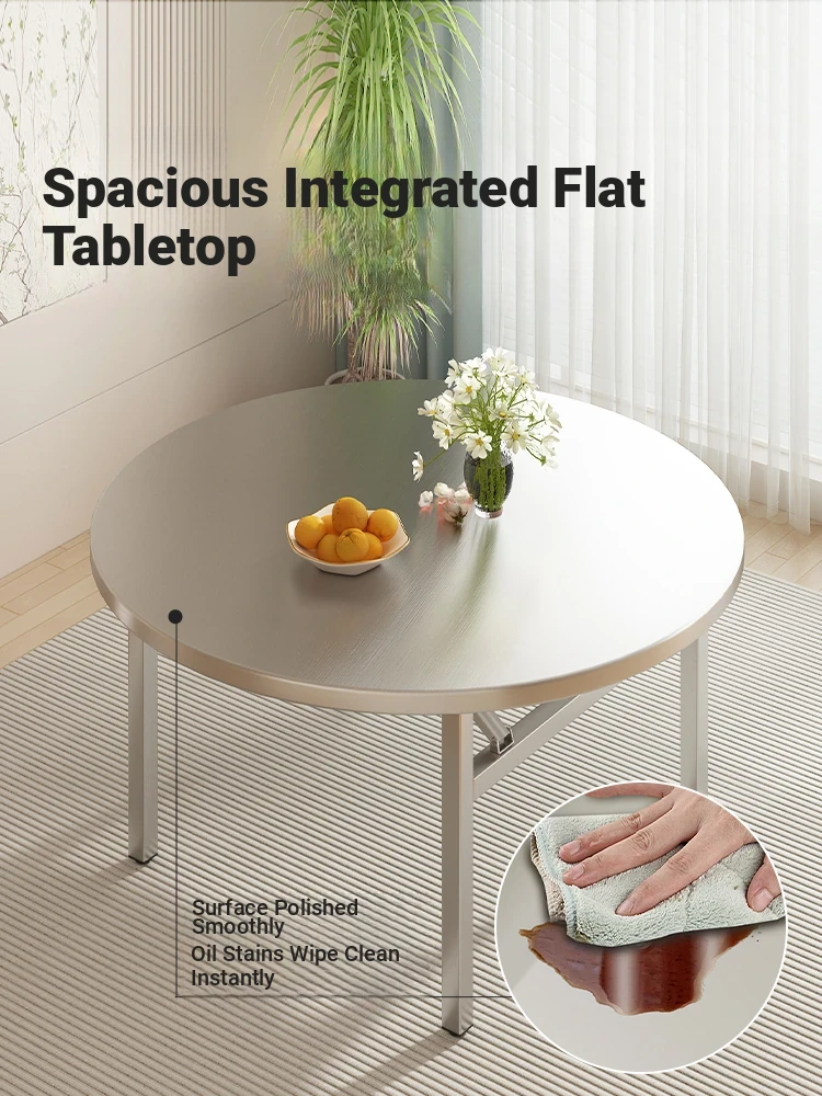 Portable Stainless Steel Folding Dining Table - Perfect for Restaurants and Gatherings of 10-12 People, Stylish Round Design, Easy to Store and Transport!