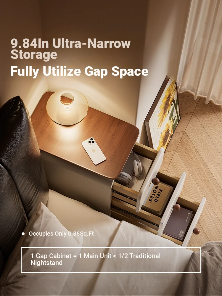 Vintage-Inspired 25cm Slim Bedside Table - Perfectly Fits Small Spaces & Narrow Gaps - 2025 New Design Storage Cabinet for Your Bedroom