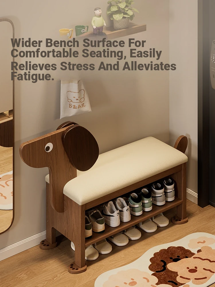 Wooden Shoe Changing Bench - Cute and Creative Animal Design, Perfect Entryway Seat for Home Use, Convenient Shoe Cabinet Stool for Easy Shoe Changing at the Door.