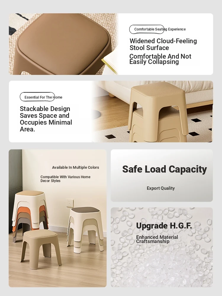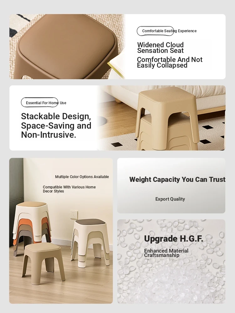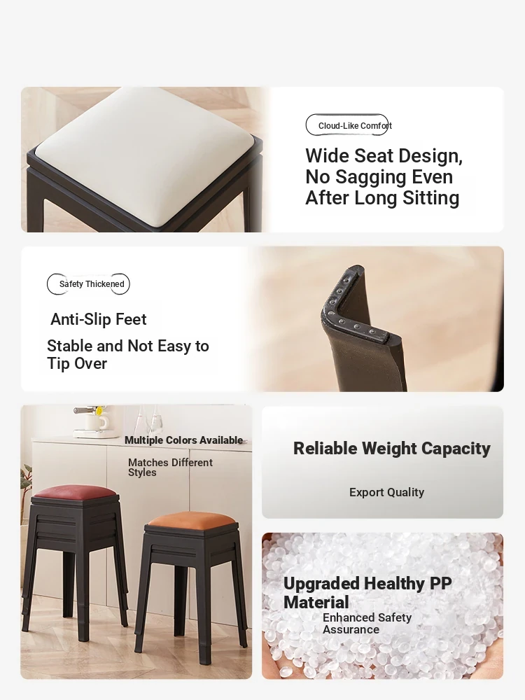 Thickened Soft Cushion Plastic Stool - Sturdy, Durable, and Stackable - Perfect for Living Room and Dining Table as Extra Seating for Guests - Stylish and Minimalist Design