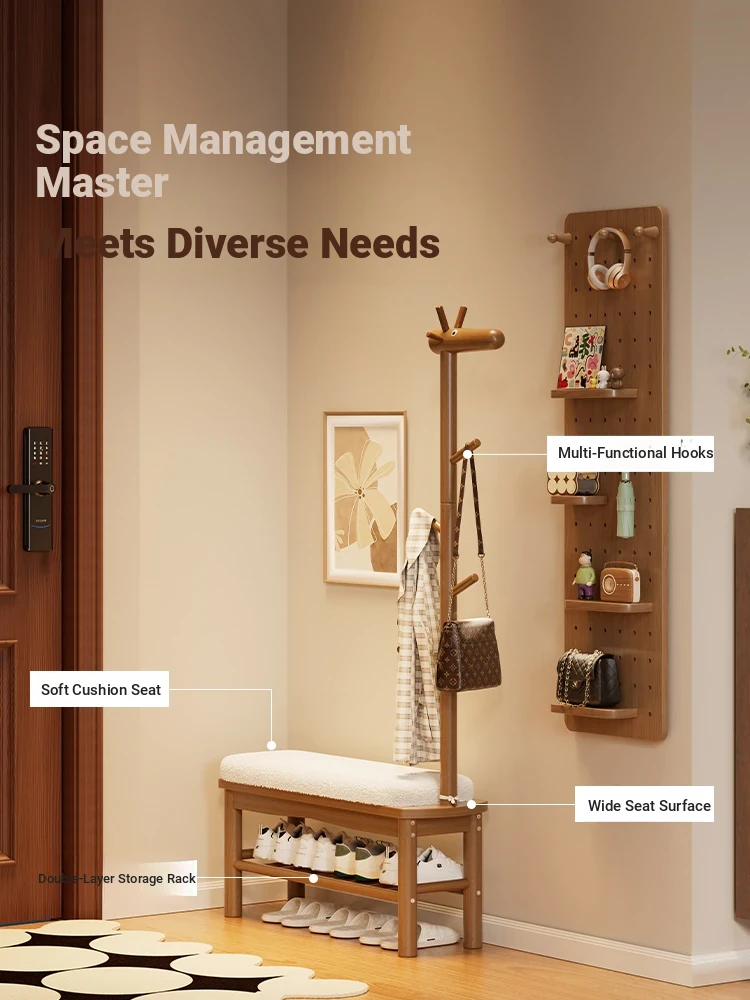 Solid Wood Deer Shoe Changing Stool - Creative Entryway Bench for Home, Perfect for Entrance Hall, Shoe Cabinet, and Corner Coat Rack. Ideal for Convenient Shoe Changing and Stylish Decor.