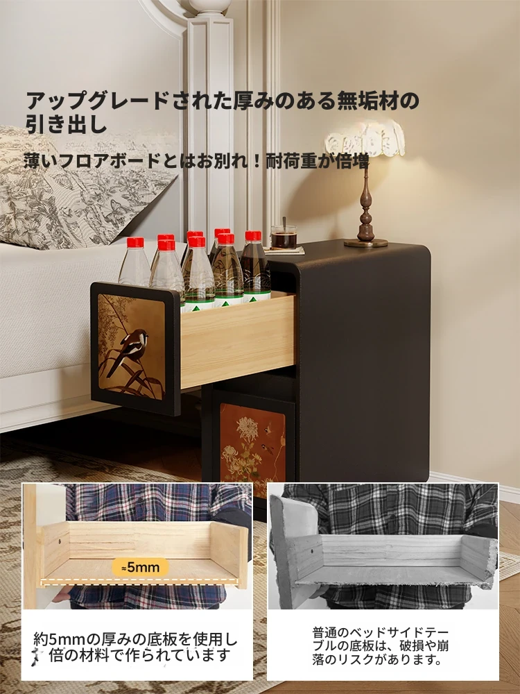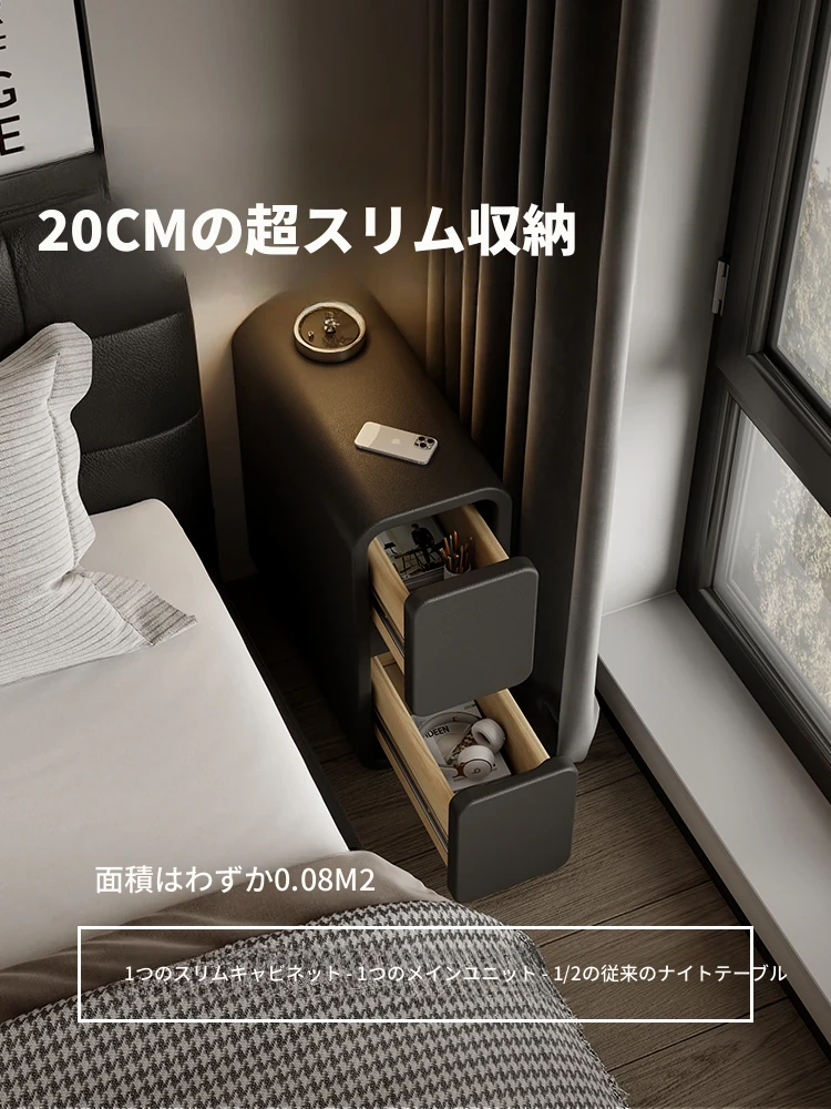 超スリムベッドサイドキャビネット - 中古クリーム風スタイル、実用的な小型収納、2025年新作!おしゃれな寝室にぴったりのスタイリッシュなデザイン。