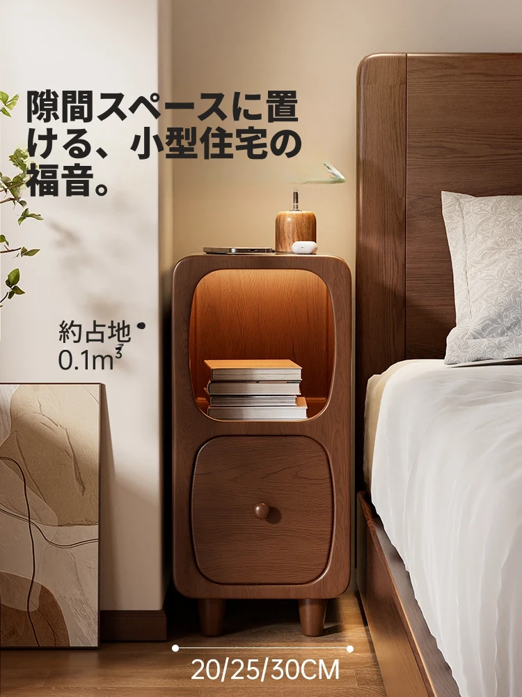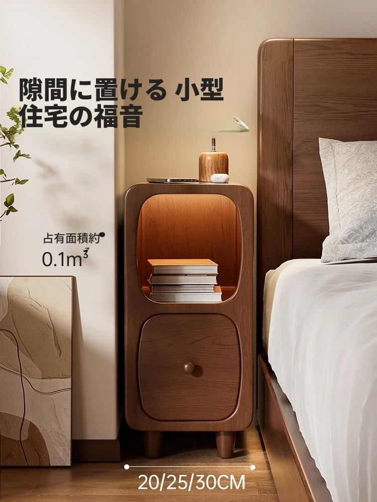 2025年新作!極狭ベッドサイドキャビネット - コンパクトな実木製、幅20cmでスペースを有効活用。おしゃれな30cm収納棚付き!寝室をスタイリッシュに演出します。