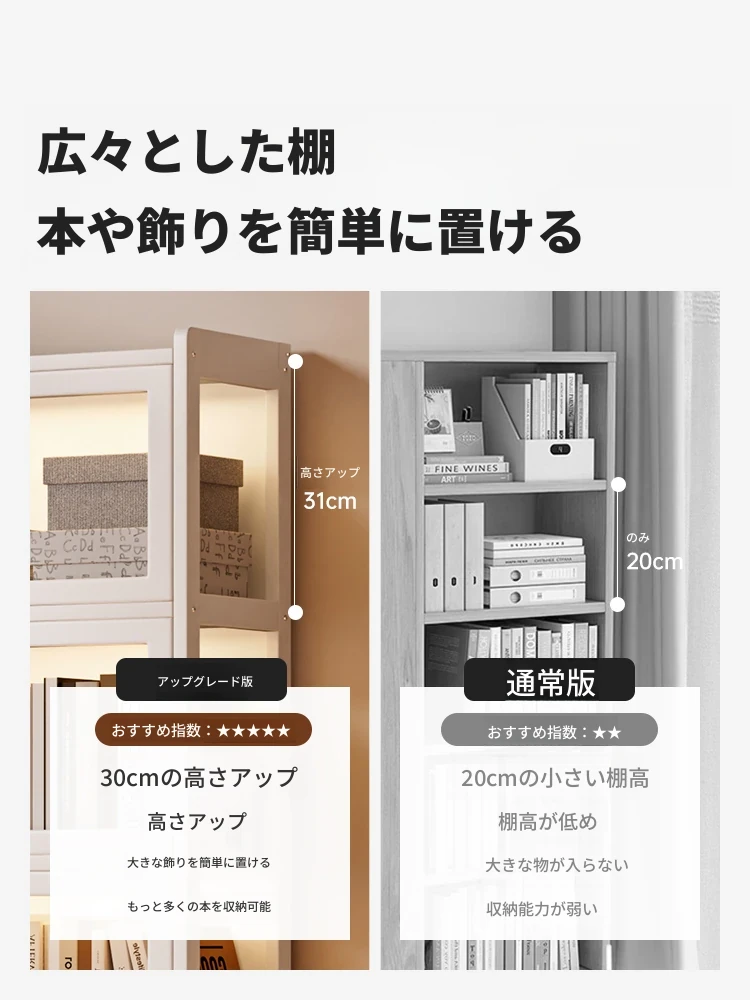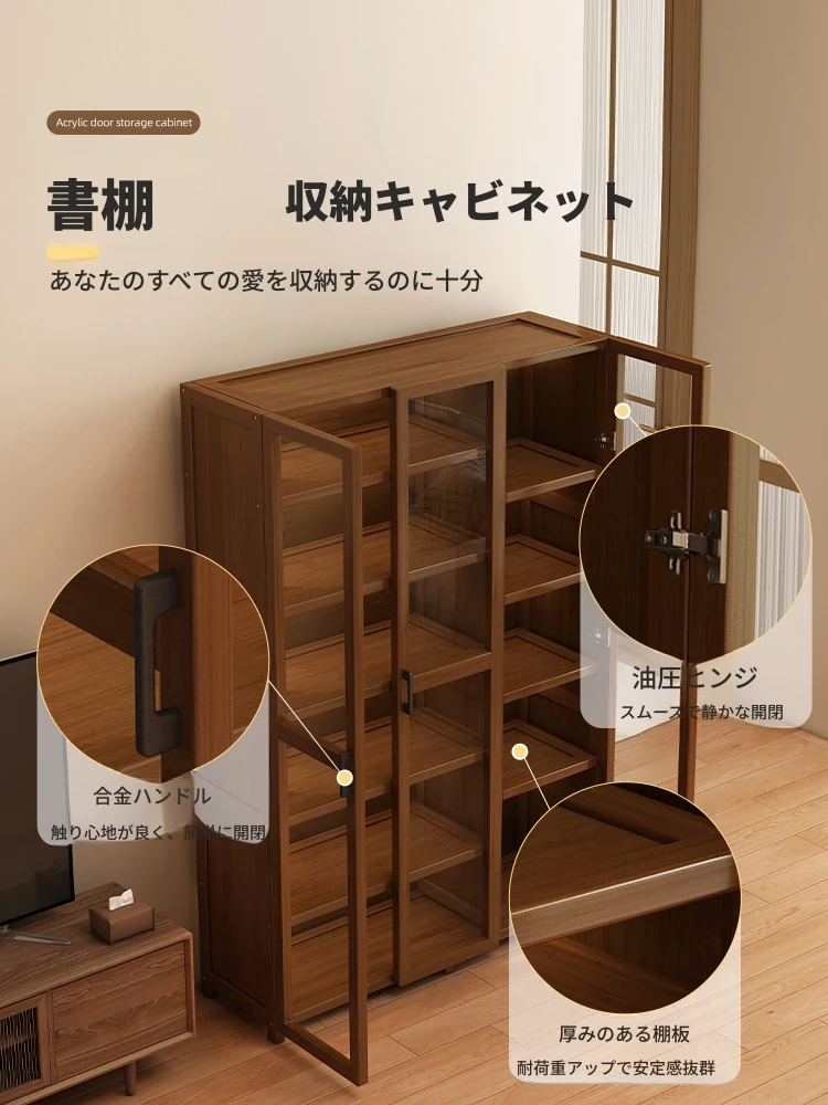 スタイリッシュな書棚兼収納キャビネット - 壁にぴったりフィット、扉付きで埃を防ぎ、透明デザインでおしゃれに展示!簡単組み立てで、リビングルームに最適な実用的な書架です。