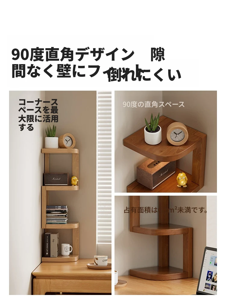 おしゃれなデザインの子供用デスクラック!壁にぴったりフィットするコンパクトな本棚。実木製で耐久性抜群!デスク上のコーナーを有効活用し、スッキリ収納。狭いスペースにも最適な収納アイテムです!