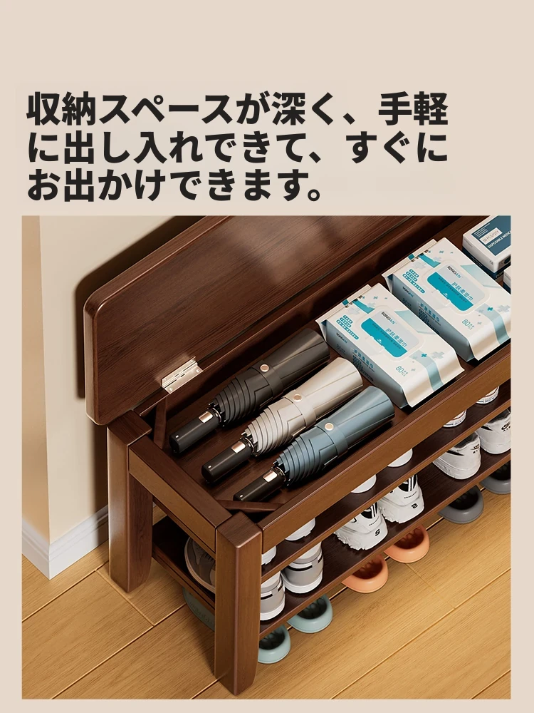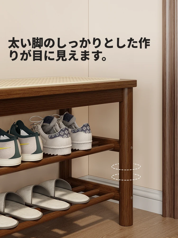 天然木製の靴を脱ぐベンチ - 家庭用玄関に最適!座れるだけでなく、靴を収納できるコンパクトサイズのロングベンチ。狭いスペースにもぴったりで、スタイリッシュな玄関を演出します!